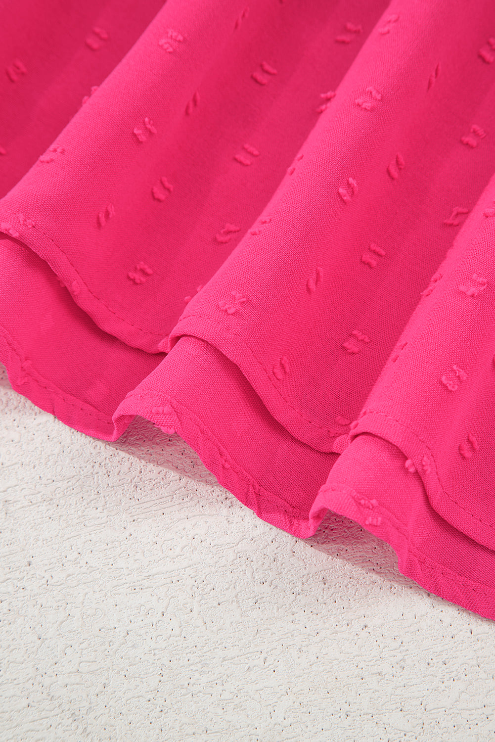 Sachet Pink Swiss Dot Smocked Frilled Neckline Short Sleeve Plus Size Dress